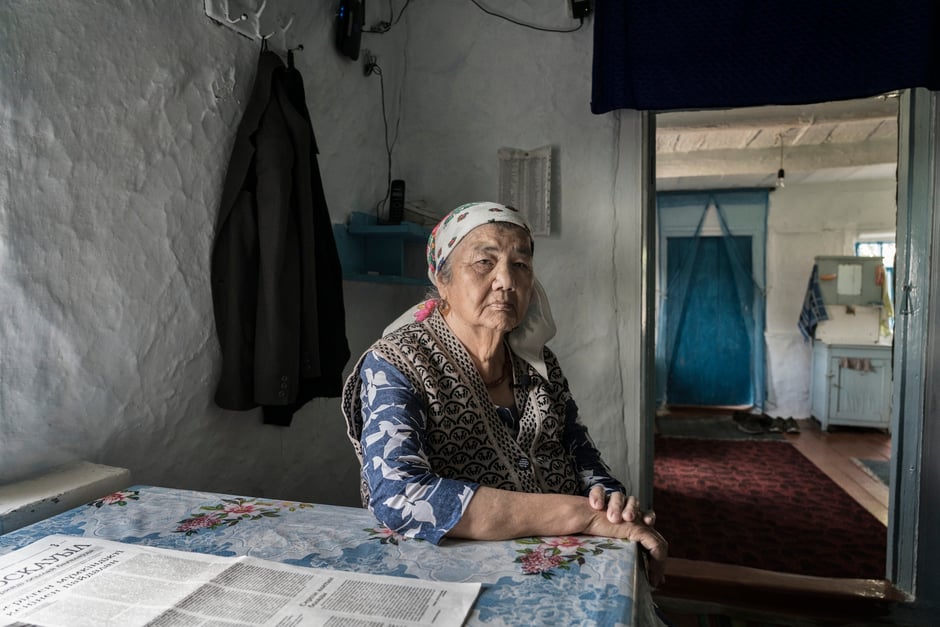 Rakima, 79 years old, lives in the contaminated village of Bodene, situated close to the border with the nuclear test site of Semipalatinsk. She is a witness of the nuclear weapons tests in the Polygon.